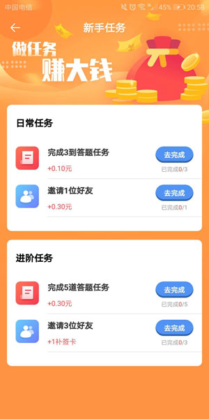 2、完成新手任务,做任务,赚大钱,签到任务,连续签到更多奖励。